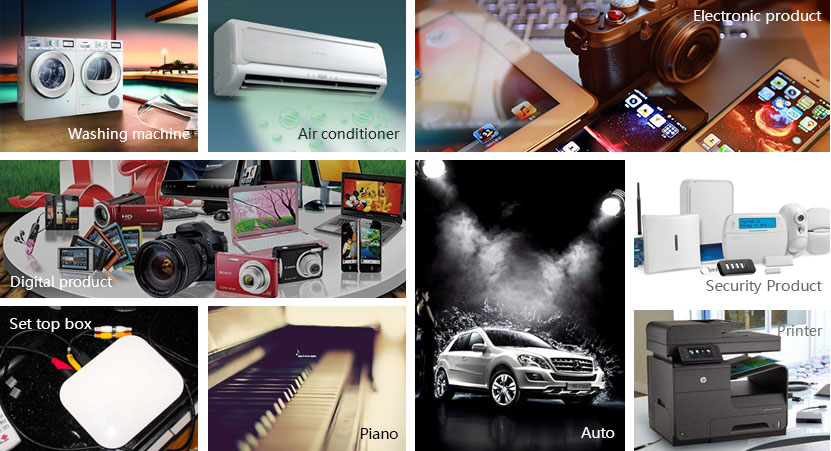 Our products are widely used in computer, monitors, televisions, set-top boxes, tax control machine, printer, camera, air conditioner, refrigerator, electric piano, piano, MP4, telephone, power amplifier, video doorbell, cars and all kinds of security products, digital products and electronic products.